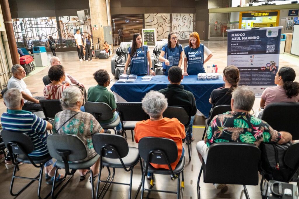 Campanha Março Azul Marinho do Icesp leva jogo de tabuleiro gigante e aulas de culinária ao Terminal Tietê