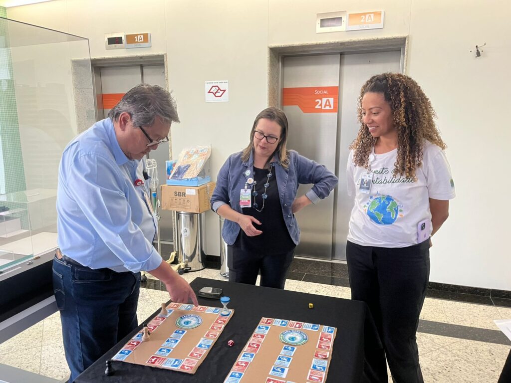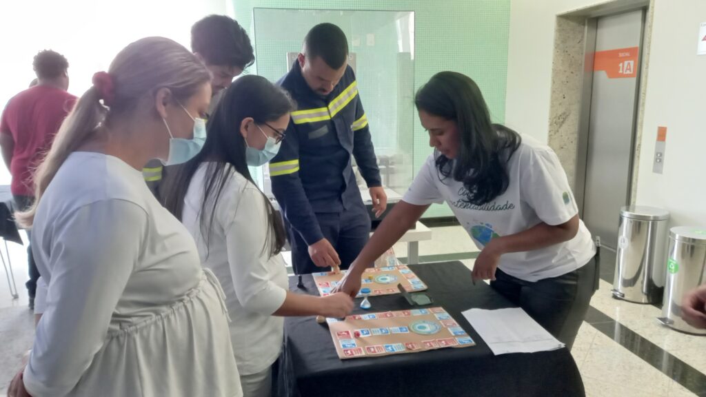 Na próxima etapa foi feito um jogo com tabuleiro para conscientizar sobre o uso consciente das descargas, e a importância de fechar as torneiras, além de reportar vazamentos ao setor da Manutenção, para que este possa ser solucionado.