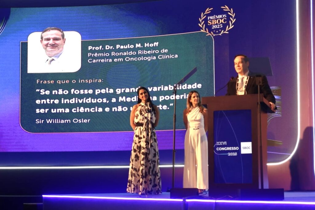 O diretor técnico da Divisão de Oncologia do Icesp, Prof. Dr. Paulo Hoff, recebeu o Prêmio Ronaldo Ribeiro de Carreira em Oncologia Clínica, maior reconhecimento da entidade, destinado a profissionais de destaque em sua área de atuação, que contribuíram de forma significativa para o avanço da Oncologia Clínica.