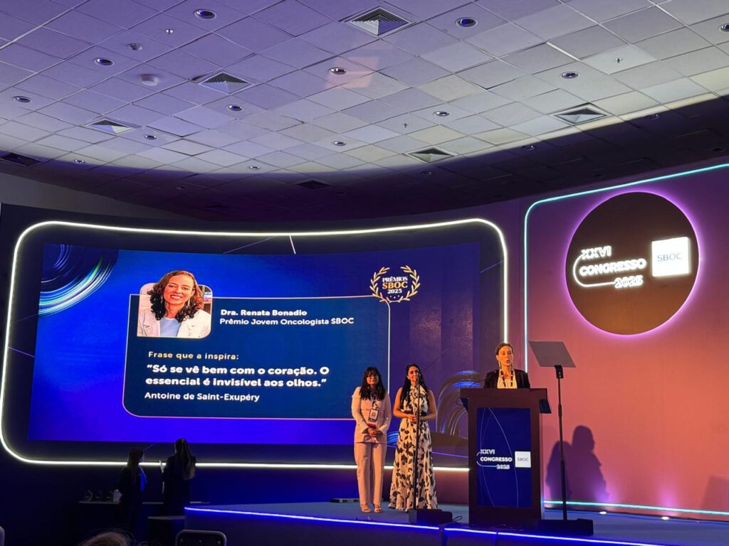 A residente em Oncologia Clínica pelo Icesp em 2019 e atualmente doutoranda na FMUSP, Dra. Renata Bonadio, foi reconhecida com o Prêmio Jovem Oncologista SBOC, concedido a profissionais de até 40 anos que se destacam pela contribuição à especialidade. Sua atuação inclui pesquisas sobre câncer de mama triplo-negativo, oncologia de precisão e biomarcadores, além de estudos sobre epidemiologia e câncer hereditário.